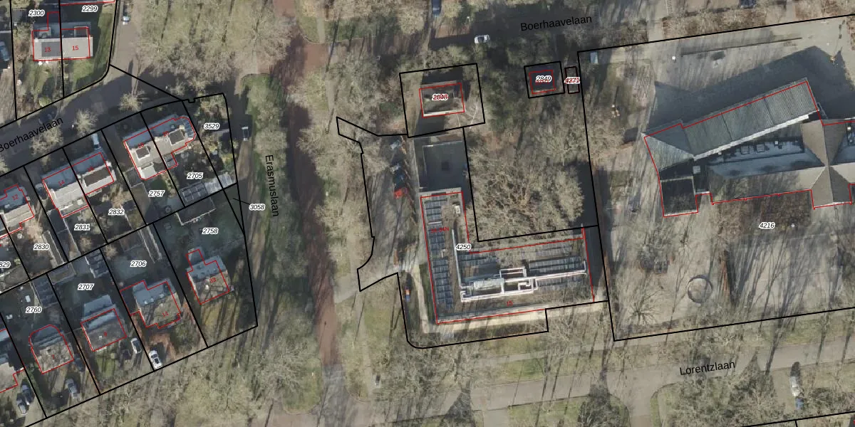 Het perceel waarop Erasmuslaan 34 staat heeft een oppervlakte van 1762 m². Dit is een zeer groot perceel. De perceeloppervlakte wordt geregistreerd door het Kadaster. Gedetailleerde informatie over de maten van dit perceel kunt u vinden in het rapport Kadastrale kaart met maatvoering van Erasmuslaan 34.