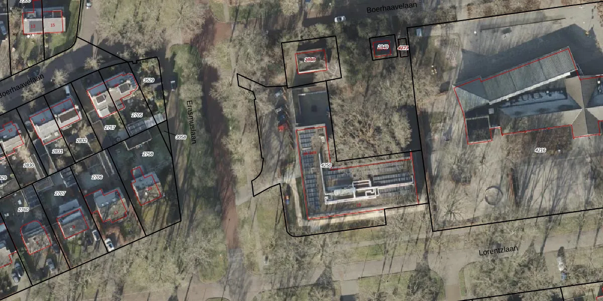 Het perceel waarop Erasmuslaan 34-A staat heeft een oppervlakte van 1762 m². Dit is een zeer groot perceel. De perceeloppervlakte wordt geregistreerd door het Kadaster. Gedetailleerde informatie over de maten van dit perceel kunt u vinden in het rapport Kadastrale kaart met maatvoering van Erasmuslaan 34-A.