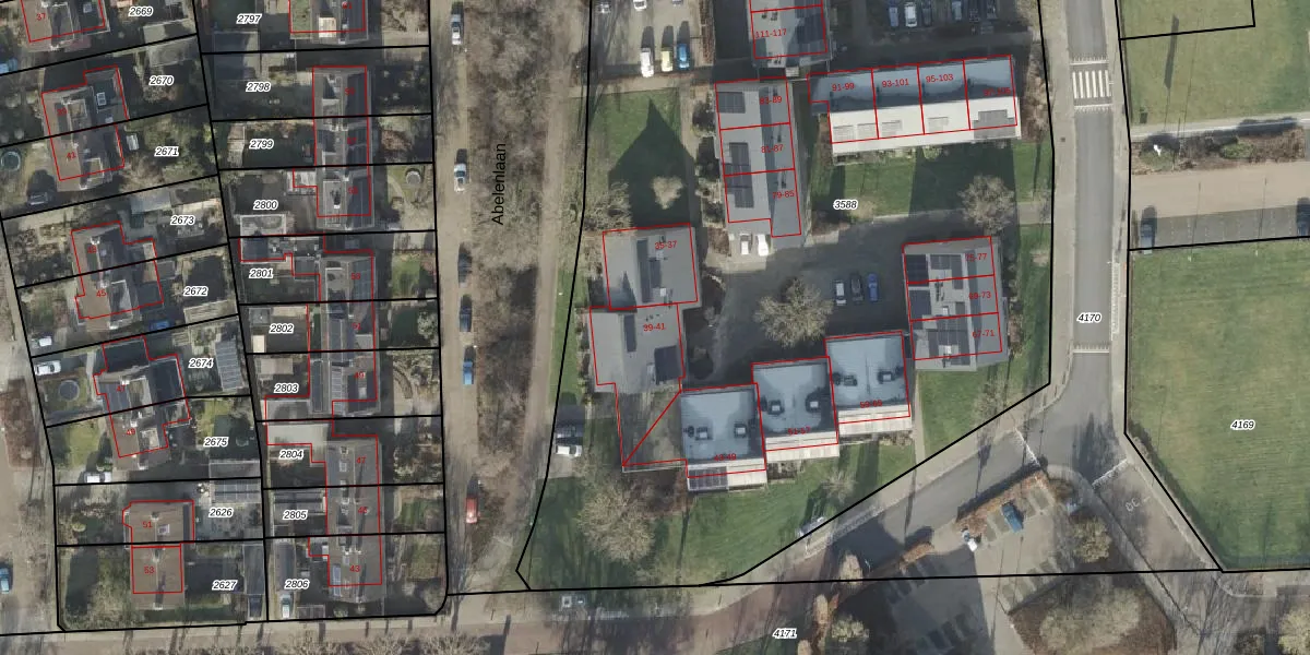 Het perceel waarop Erasmuslaan 39 staat heeft een oppervlakte van 8405 m². Dit is een zeer groot perceel. De perceeloppervlakte wordt geregistreerd door het Kadaster. Gedetailleerde informatie over de maten van dit perceel kunt u vinden in het rapport Kadastrale kaart met maatvoering van Erasmuslaan 39.