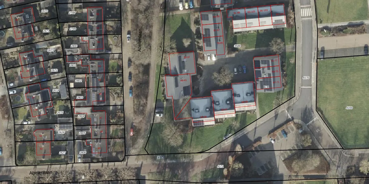 Het perceel waarop Erasmuslaan 41 staat heeft een oppervlakte van 8405 m². Dit is een zeer groot perceel. De perceeloppervlakte wordt geregistreerd door het Kadaster. Gedetailleerde informatie over de maten van dit perceel kunt u vinden in het rapport Kadastrale kaart met maatvoering van Erasmuslaan 41.