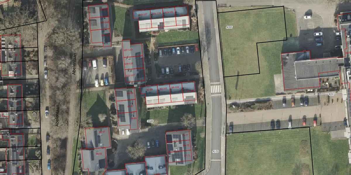 Het perceel waarop Erasmuslaan 95 staat heeft een oppervlakte van 8405 m². Dit is een zeer groot perceel. De perceeloppervlakte wordt geregistreerd door het Kadaster. Gedetailleerde informatie over de maten van dit perceel kunt u vinden in het rapport Kadastrale kaart met maatvoering van Erasmuslaan 95.