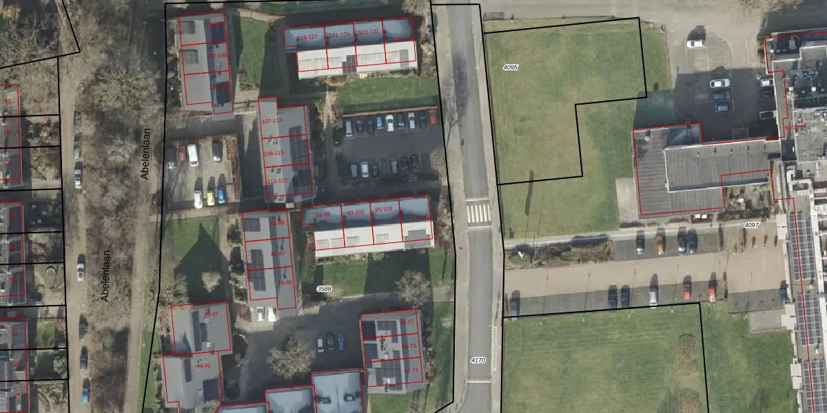 Het perceel waarop Erasmuslaan 97 staat heeft een oppervlakte van 8405 m². Dit is een zeer groot perceel. De perceeloppervlakte wordt geregistreerd door het Kadaster. Gedetailleerde informatie over de maten van dit perceel kunt u vinden in het rapport Kadastrale kaart met maatvoering van Erasmuslaan 97.