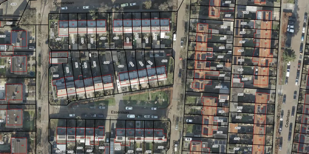 Het perceel waarop Essenlaan 19 staat heeft een oppervlakte van 152 m². Dit is een middelgroot perceel. De perceeloppervlakte wordt geregistreerd door het Kadaster. Gedetailleerde informatie over de maten van dit perceel kunt u vinden in het rapport Kadastrale kaart met maatvoering van Essenlaan 19.