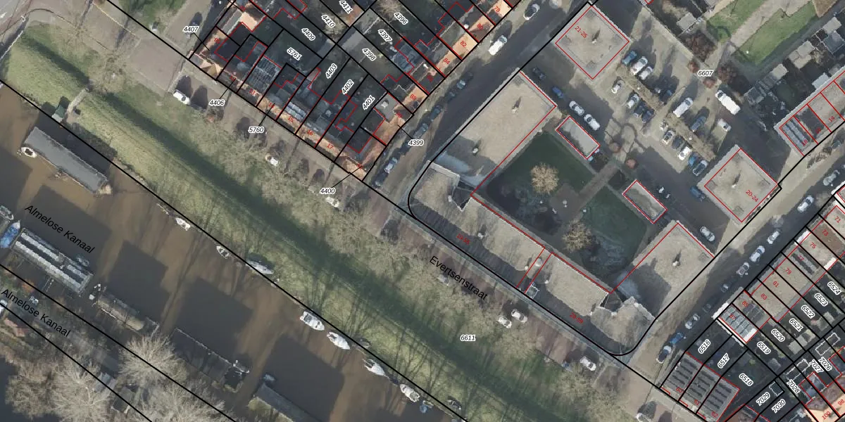 Evertsenstraat 24 is gelegen op kadastraal perceel ZLE00B6607. Deze kadastrale aanduiding is uniek en wordt gebruikt door het Kadaster om eigendomsrechten en andere zakelijke rechten vast te leggen. Het perceel maakt onderdeel uit van de kadastrale gemeente Zwolle.