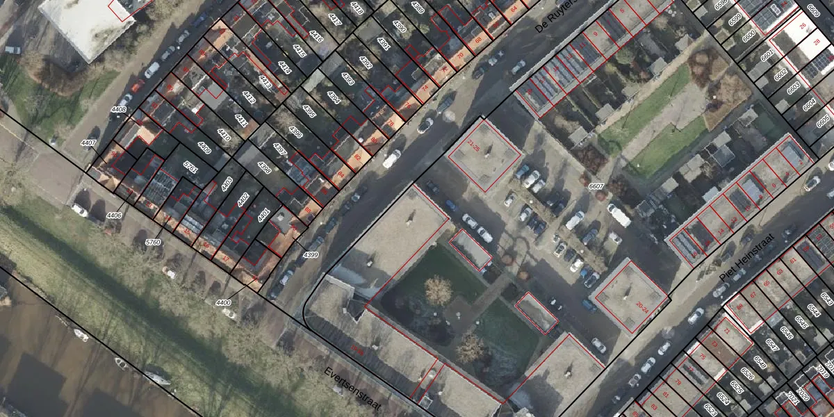 Het perceel waarop Evertsenstraat 35 staat heeft een oppervlakte van 7036 m². Dit is een zeer groot perceel. De perceeloppervlakte wordt geregistreerd door het Kadaster. Gedetailleerde informatie over de maten van dit perceel kunt u vinden in het rapport Kadastrale kaart met maatvoering van Evertsenstraat 35.