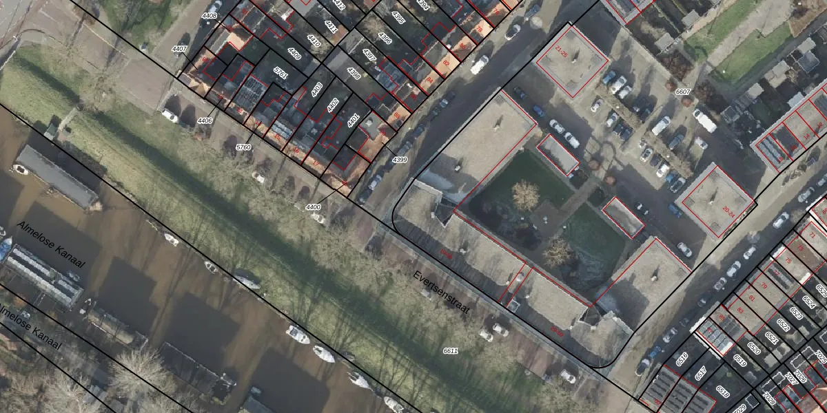 Het perceel waarop Evertsenstraat 39 staat heeft een oppervlakte van 7036 m². Dit is een zeer groot perceel. De perceeloppervlakte wordt geregistreerd door het Kadaster. Gedetailleerde informatie over de maten van dit perceel kunt u vinden in het rapport Kadastrale kaart met maatvoering van Evertsenstraat 39.