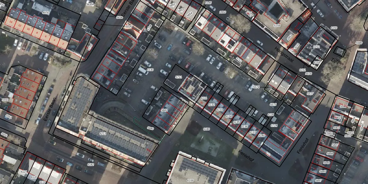 Het perceel waarop Fenixhof 36 staat heeft een oppervlakte van 250 m². Dit is een middelgroot perceel. De perceeloppervlakte wordt geregistreerd door het Kadaster. Gedetailleerde informatie over de maten van dit perceel kunt u vinden in het rapport Kadastrale kaart met maatvoering van Fenixhof 36.