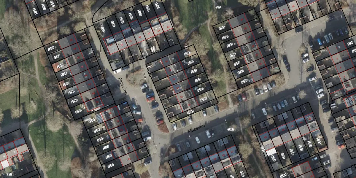 Het perceel waarop Fluessen 34 staat heeft een oppervlakte van 157 m². Dit is een middelgroot perceel. De perceeloppervlakte wordt geregistreerd door het Kadaster. Gedetailleerde informatie over de maten van dit perceel kunt u vinden in het rapport Kadastrale kaart met maatvoering van Fluessen 34.