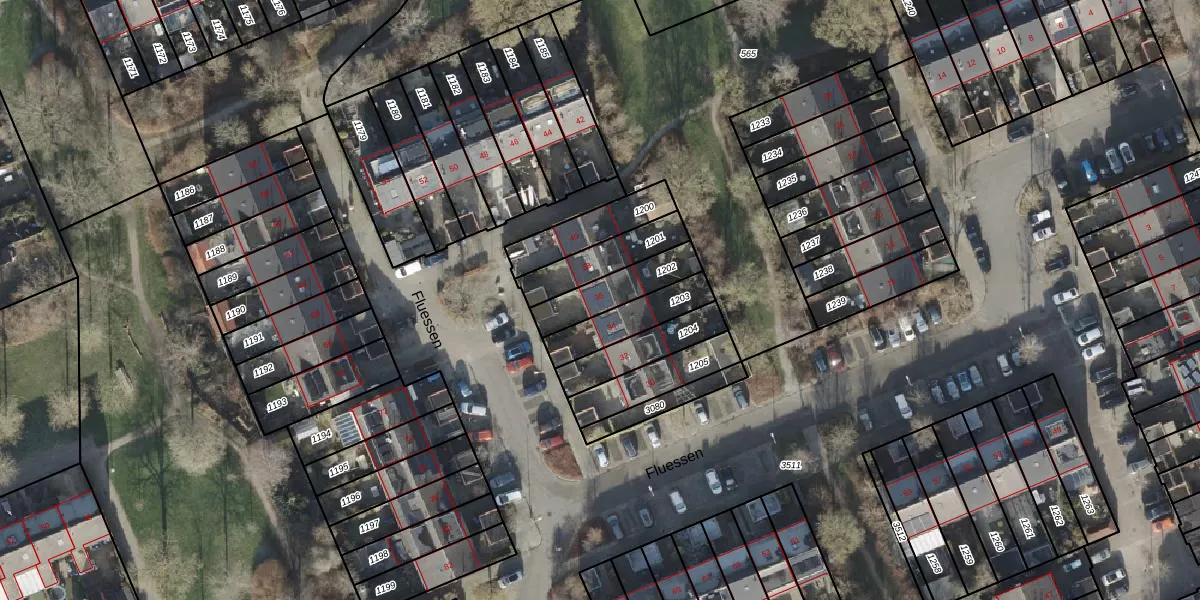 Het perceel waarop Fluessen 36 staat heeft een oppervlakte van 157 m². Dit is een middelgroot perceel. De perceeloppervlakte wordt geregistreerd door het Kadaster. Gedetailleerde informatie over de maten van dit perceel kunt u vinden in het rapport Kadastrale kaart met maatvoering van Fluessen 36.