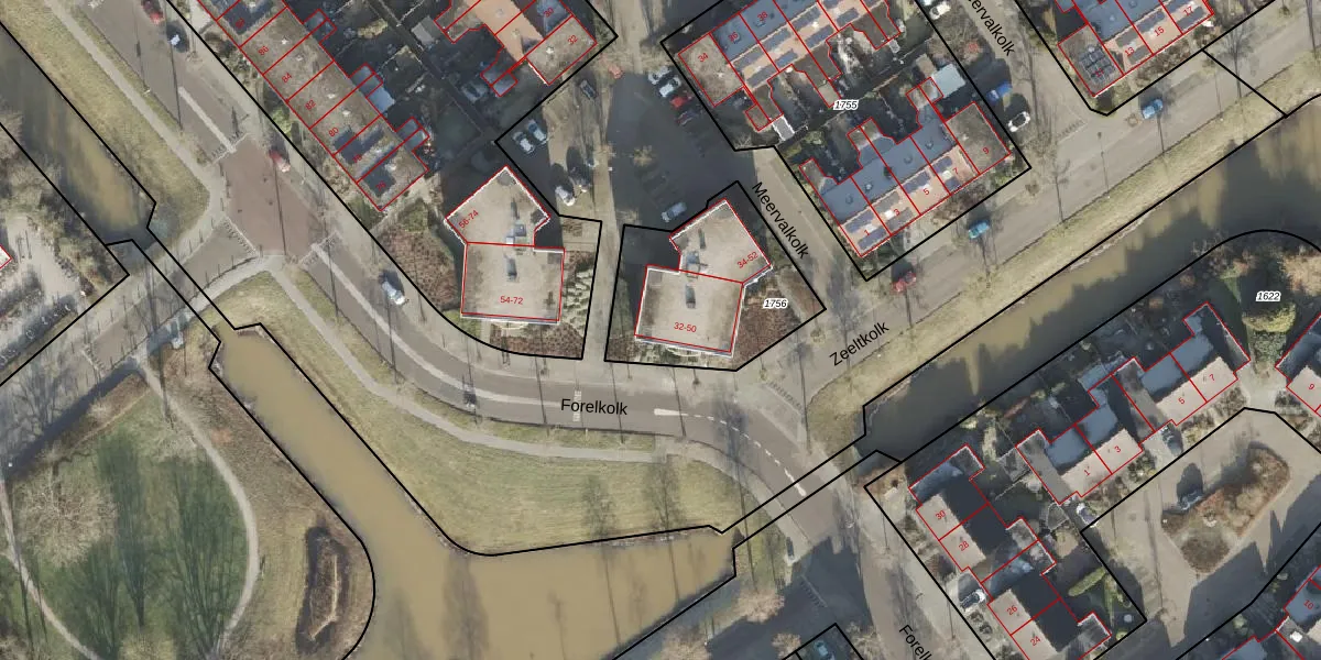Het perceel waarop Forelkolk 32 staat heeft een oppervlakte van 612 m². Dit is een groot perceel. De perceeloppervlakte wordt geregistreerd door het Kadaster. Gedetailleerde informatie over de maten van dit perceel kunt u vinden in het rapport Kadastrale kaart met maatvoering van Forelkolk 32.