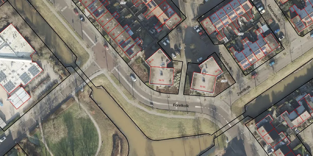 Het perceel waarop Forelkolk 60 staat heeft een oppervlakte van 4227 m². Dit is een zeer groot perceel. De perceeloppervlakte wordt geregistreerd door het Kadaster. Gedetailleerde informatie over de maten van dit perceel kunt u vinden in het rapport Kadastrale kaart met maatvoering van Forelkolk 60.