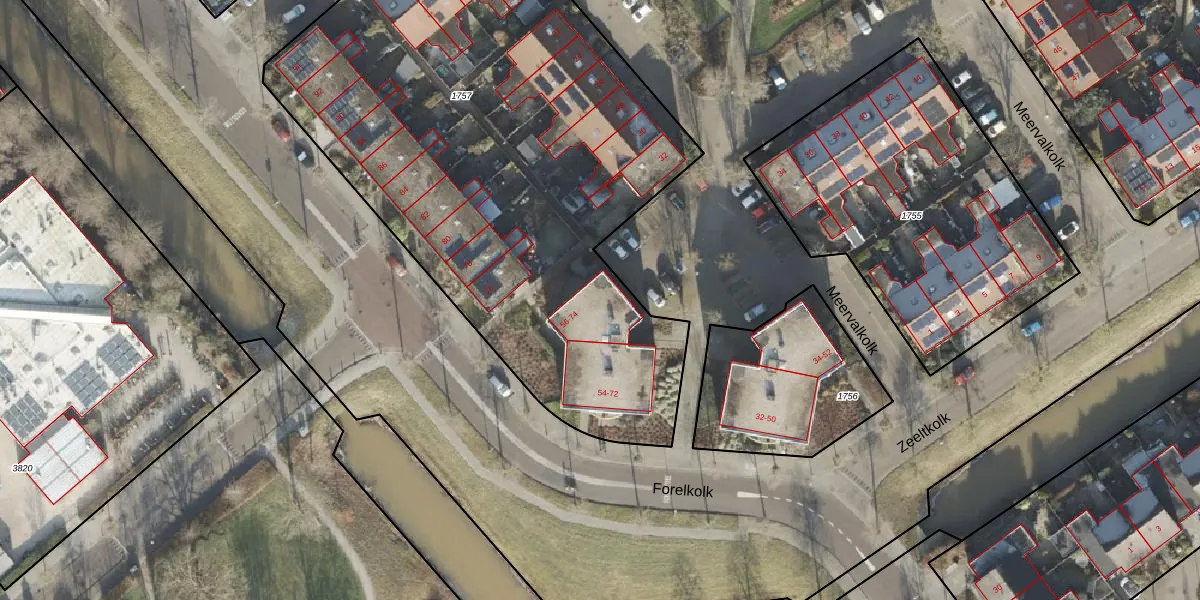 Het perceel waarop Forelkolk 74 staat heeft een oppervlakte van 4227 m². Dit is een zeer groot perceel. De perceeloppervlakte wordt geregistreerd door het Kadaster. Gedetailleerde informatie over de maten van dit perceel kunt u vinden in het rapport Kadastrale kaart met maatvoering van Forelkolk 74.