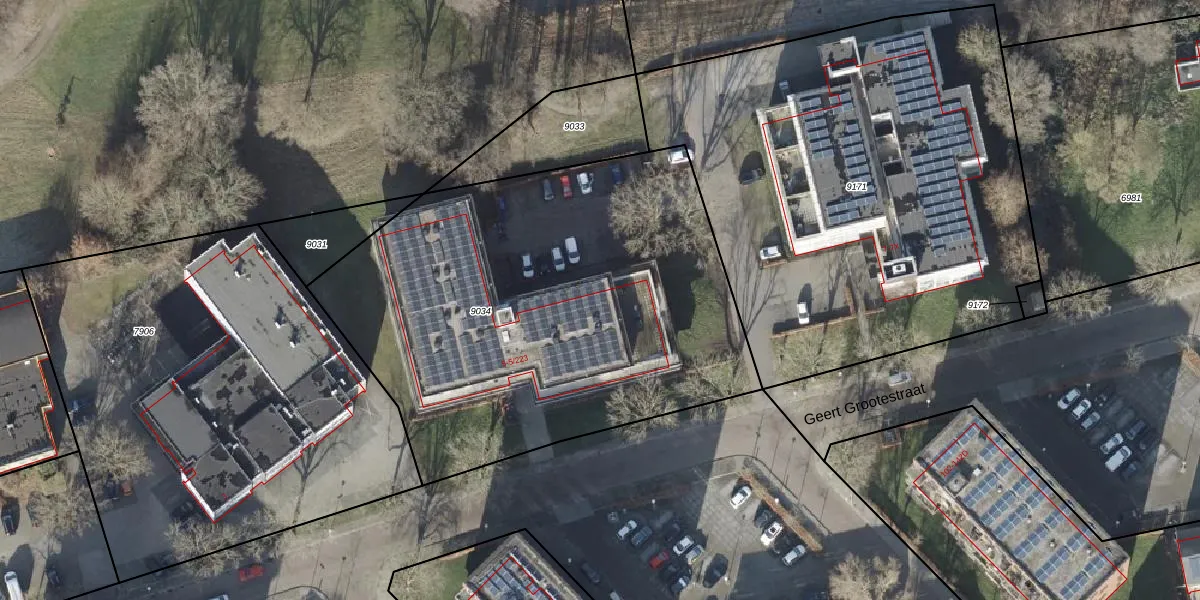 Het perceel waarop Geert Grootestraat 5-012 staat heeft een oppervlakte van 2705 m². Dit is een zeer groot perceel. De perceeloppervlakte wordt geregistreerd door het Kadaster. Gedetailleerde informatie over de maten van dit perceel kunt u vinden in het rapport Kadastrale kaart met maatvoering van Geert Grootestraat 5-012.