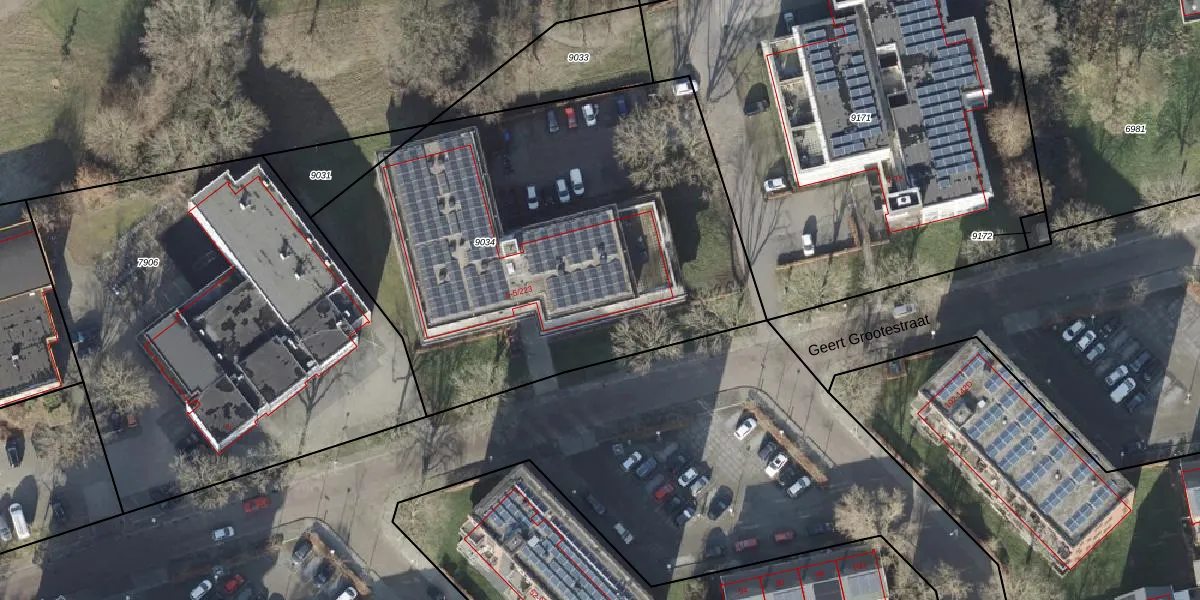 Het perceel waarop Geert Grootestraat 5-125 staat heeft een oppervlakte van 2705 m². Dit is een zeer groot perceel. De perceeloppervlakte wordt geregistreerd door het Kadaster. Gedetailleerde informatie over de maten van dit perceel kunt u vinden in het rapport Kadastrale kaart met maatvoering van Geert Grootestraat 5-125.