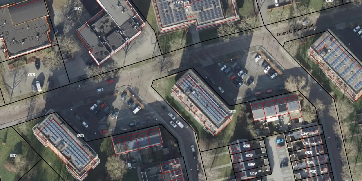 Het perceel waarop Geert Grootestraat 70 staat heeft een oppervlakte van 2073 m². Dit is een zeer groot perceel. De perceeloppervlakte wordt geregistreerd door het Kadaster. Gedetailleerde informatie over de maten van dit perceel kunt u vinden in het rapport Kadastrale kaart met maatvoering van Geert Grootestraat 70.