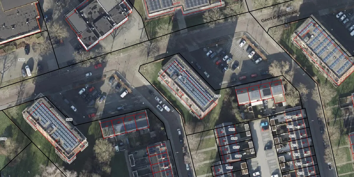 Het perceel waarop Geert Grootestraat 80 staat heeft een oppervlakte van 2073 m². Dit is een zeer groot perceel. De perceeloppervlakte wordt geregistreerd door het Kadaster. Gedetailleerde informatie over de maten van dit perceel kunt u vinden in het rapport Kadastrale kaart met maatvoering van Geert Grootestraat 80.
