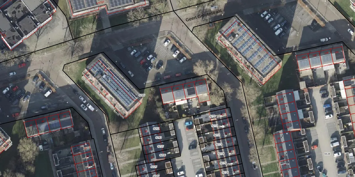 Het perceel waarop Geert Grootestraat 96 staat heeft een oppervlakte van 2073 m². Dit is een zeer groot perceel. De perceeloppervlakte wordt geregistreerd door het Kadaster. Gedetailleerde informatie over de maten van dit perceel kunt u vinden in het rapport Kadastrale kaart met maatvoering van Geert Grootestraat 96.