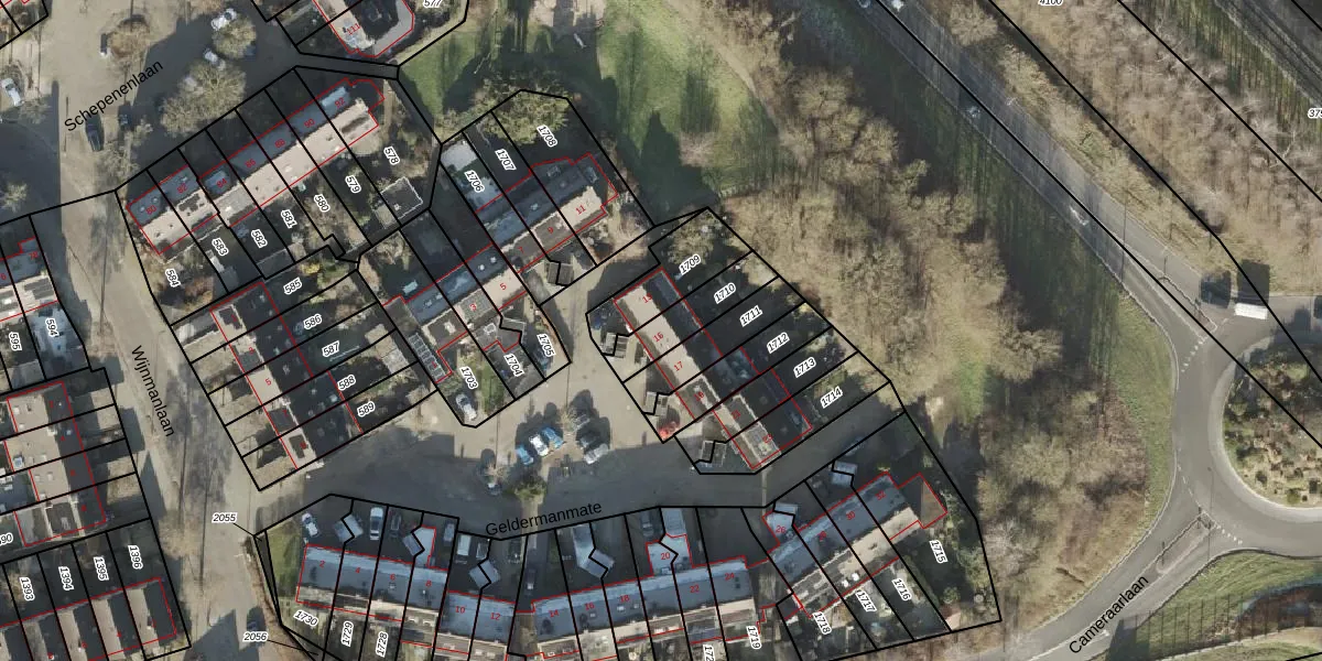 Gebruik de zoekbalk of klik op een perceel voor informatie over de adressen binnen dit perceel.