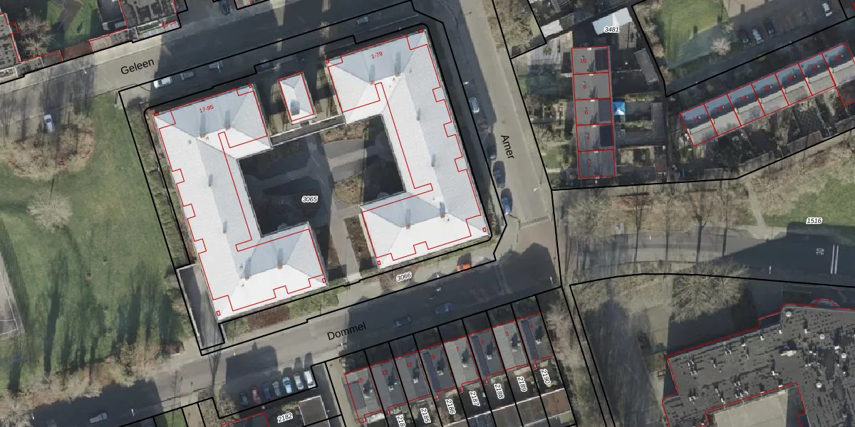 Het perceel waarop Geleen 45 staat heeft een oppervlakte van 3826 m². Dit is een zeer groot perceel. De perceeloppervlakte wordt geregistreerd door het Kadaster. Gedetailleerde informatie over de maten van dit perceel kunt u vinden in het rapport Kadastrale kaart met maatvoering van Geleen 45.