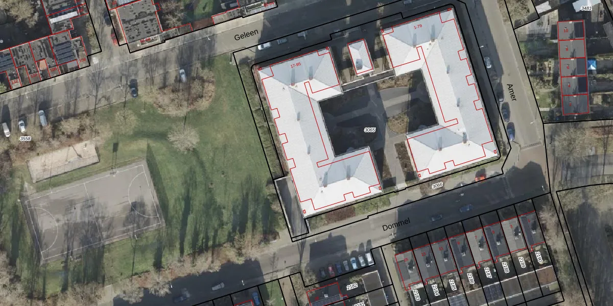 Het perceel waarop Geleen 55 staat heeft een oppervlakte van 3826 m². Dit is een zeer groot perceel. De perceeloppervlakte wordt geregistreerd door het Kadaster. Gedetailleerde informatie over de maten van dit perceel kunt u vinden in het rapport Kadastrale kaart met maatvoering van Geleen 55.