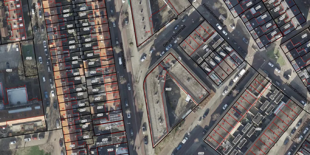 Het perceel waarop Gerard Doustraat 4 staat heeft een oppervlakte van 1379 m². Dit is een zeer groot perceel. De perceeloppervlakte wordt geregistreerd door het Kadaster. Gedetailleerde informatie over de maten van dit perceel kunt u vinden in het rapport Kadastrale kaart met maatvoering van Gerard Doustraat 4.