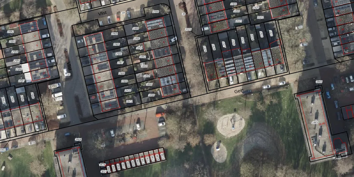 Gebruik de zoekbalk of klik op een perceel voor informatie over de adressen binnen dit perceel.