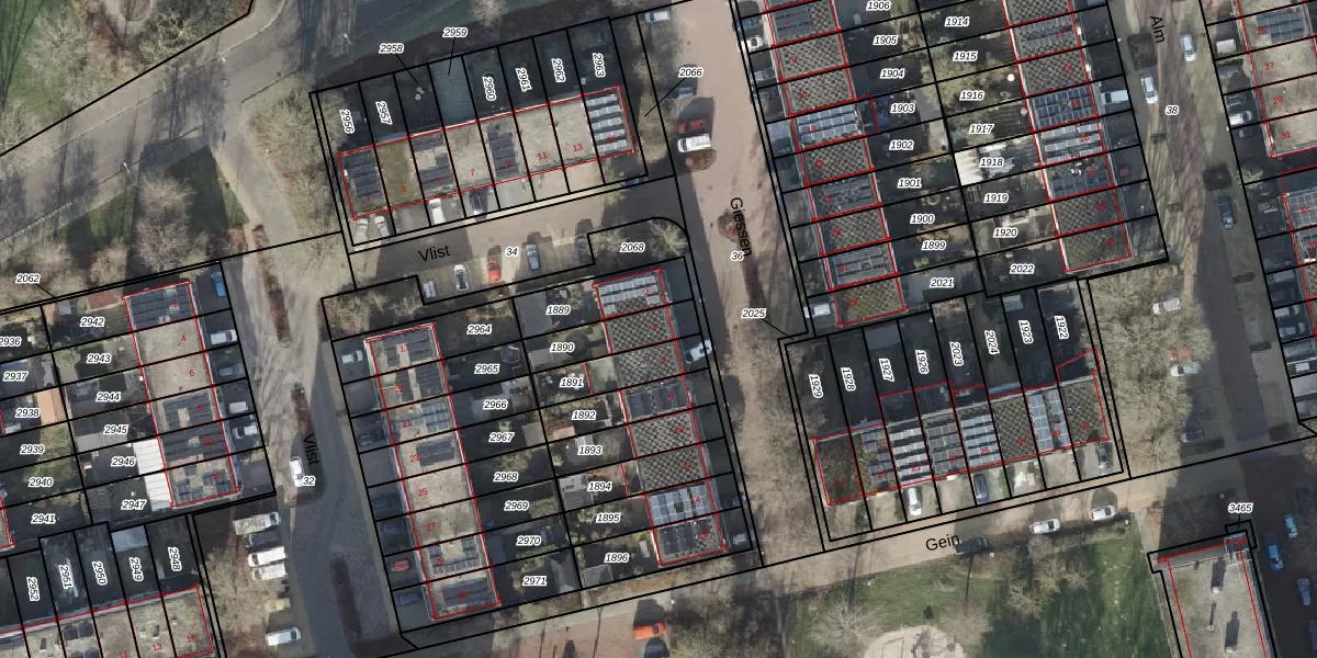 Gebruik de zoekbalk of klik op een perceel voor informatie over de adressen binnen dit perceel.