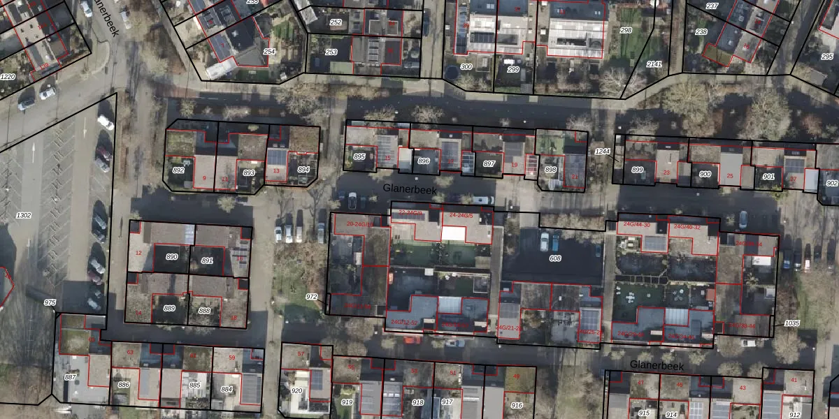 Het perceel waarop Glanerbeek 22 staat heeft een oppervlakte van 3092 m². Dit is een zeer groot perceel. De perceeloppervlakte wordt geregistreerd door het Kadaster. Gedetailleerde informatie over de maten van dit perceel kunt u vinden in het rapport Kadastrale kaart met maatvoering van Glanerbeek 22.