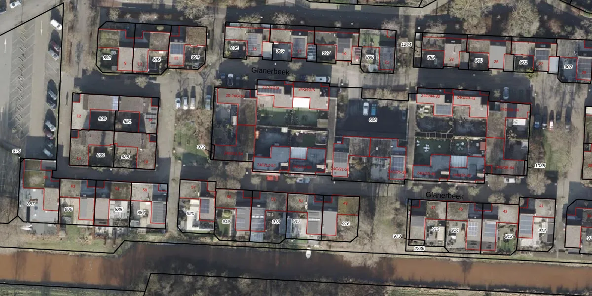 Het perceel waarop Glanerbeek 24-G-16 staat heeft een oppervlakte van 3092 m². Dit is een zeer groot perceel. De perceeloppervlakte wordt geregistreerd door het Kadaster. Gedetailleerde informatie over de maten van dit perceel kunt u vinden in het rapport Kadastrale kaart met maatvoering van Glanerbeek 24-G-16.