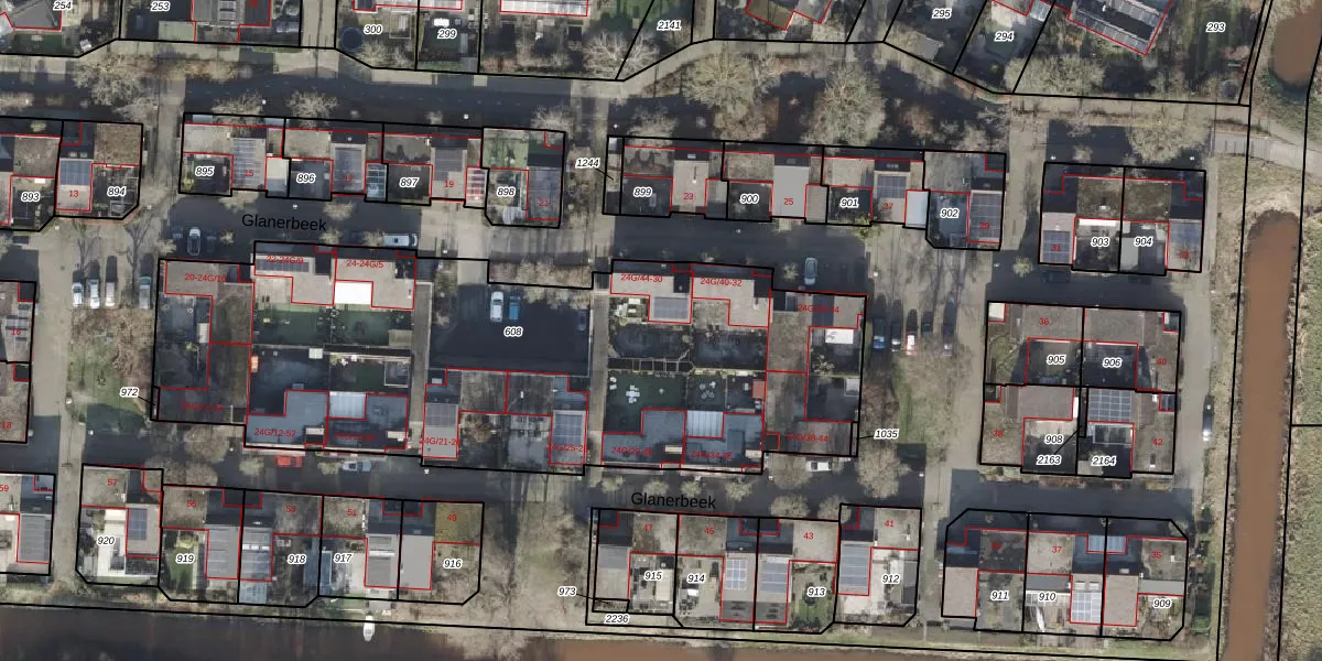 Het perceel waarop Glanerbeek 24-G-45 staat heeft een oppervlakte van 3092 m². Dit is een zeer groot perceel. De perceeloppervlakte wordt geregistreerd door het Kadaster. Gedetailleerde informatie over de maten van dit perceel kunt u vinden in het rapport Kadastrale kaart met maatvoering van Glanerbeek 24-G-45.