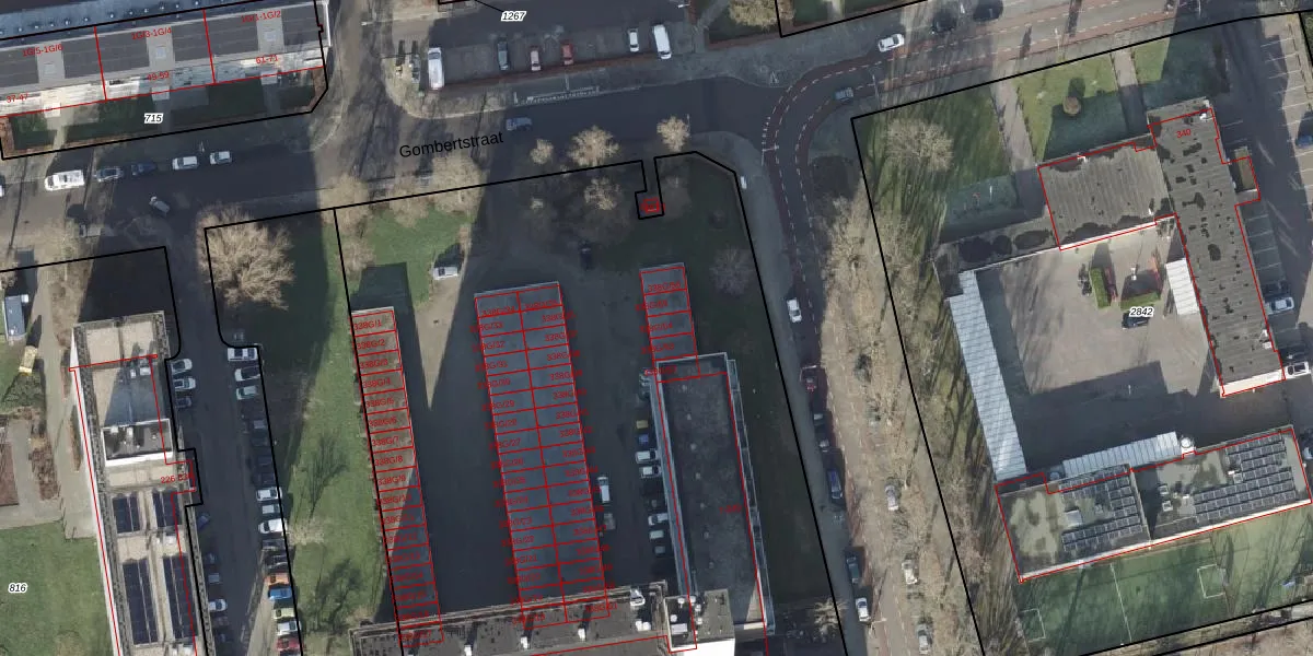 Het perceel waarop Gombertstraat 338-G-54 staat heeft een oppervlakte van 8550 m². Dit is een zeer groot perceel. De perceeloppervlakte wordt geregistreerd door het Kadaster. Gedetailleerde informatie over de maten van dit perceel kunt u vinden in het rapport Kadastrale kaart met maatvoering van Gombertstraat 338-G-54.