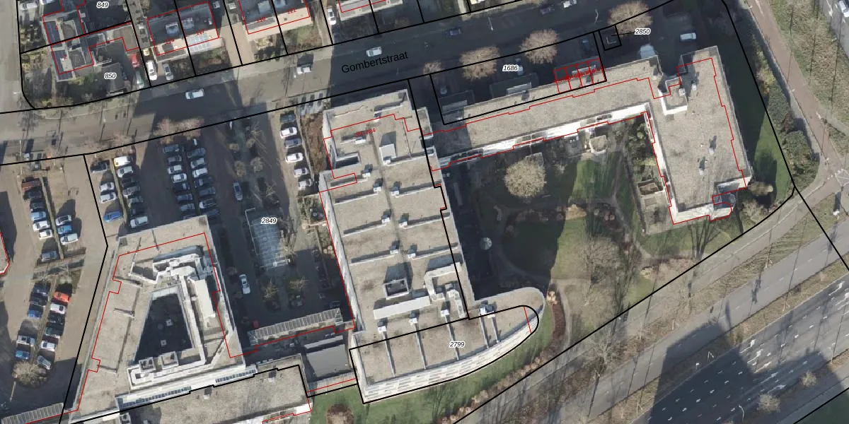 Het perceel waarop Gombertstraat 850 staat heeft een oppervlakte van 5168 m². Dit is een zeer groot perceel. De perceeloppervlakte wordt geregistreerd door het Kadaster. Gedetailleerde informatie over de maten van dit perceel kunt u vinden in het rapport Kadastrale kaart met maatvoering van Gombertstraat 850.
