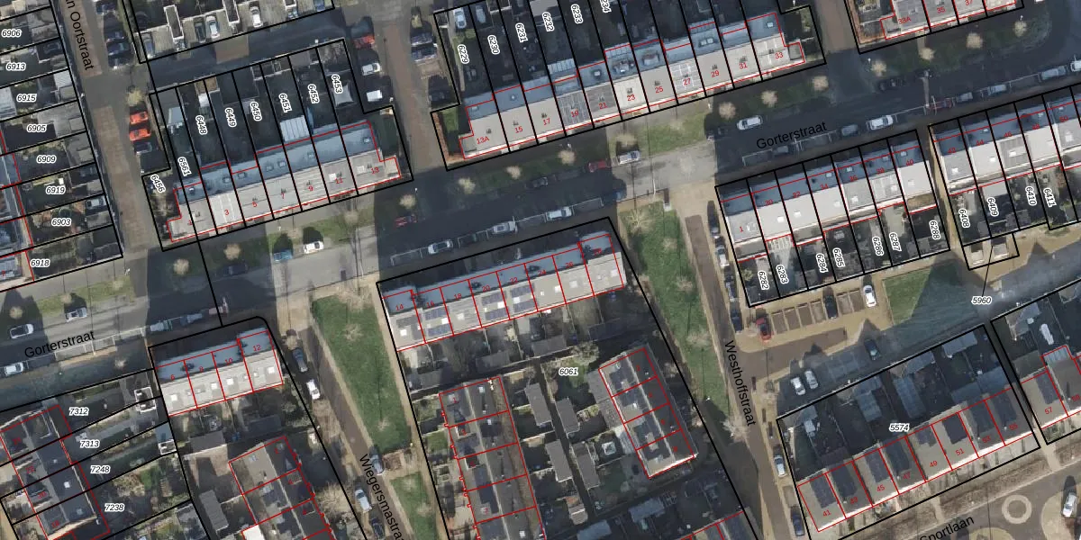 Het perceel waarop Gorterstraat 24 staat heeft een oppervlakte van 3825 m². Dit is een zeer groot perceel. De perceeloppervlakte wordt geregistreerd door het Kadaster. Gedetailleerde informatie over de maten van dit perceel kunt u vinden in het rapport Kadastrale kaart met maatvoering van Gorterstraat 24.