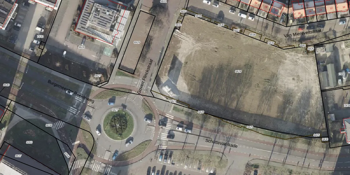 Het perceel waarop Govert Flinckstraat 2-504 staat heeft een oppervlakte van 4490 m². Dit is een zeer groot perceel. De perceeloppervlakte wordt geregistreerd door het Kadaster. Gedetailleerde informatie over de maten van dit perceel kunt u vinden in het rapport Kadastrale kaart met maatvoering van Govert Flinckstraat 2-504.