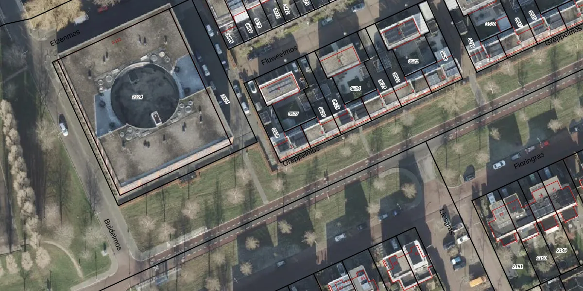 Gebruik de zoekbalk of klik op een perceel voor informatie over de adressen binnen dit perceel.
