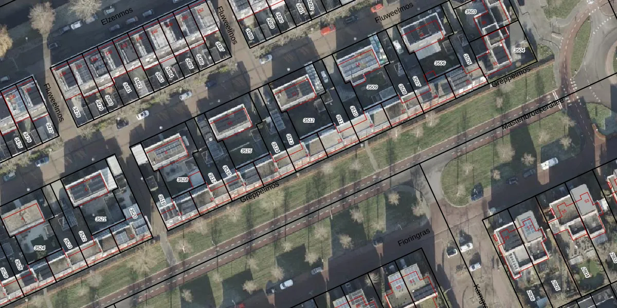 Gebruik de zoekbalk of klik op een perceel voor informatie over de adressen binnen dit perceel.