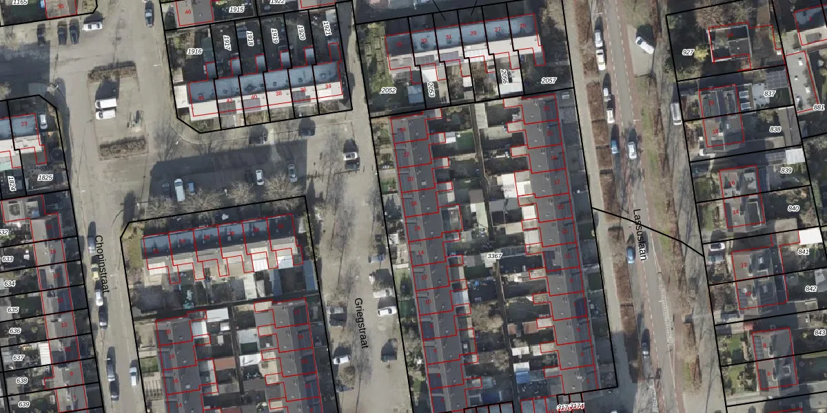 Het perceel waarop Griegstraat 18 staat heeft een oppervlakte van 3738 m². Dit is een zeer groot perceel. De perceeloppervlakte wordt geregistreerd door het Kadaster. Gedetailleerde informatie over de maten van dit perceel kunt u vinden in het rapport Kadastrale kaart met maatvoering van Griegstraat 18.