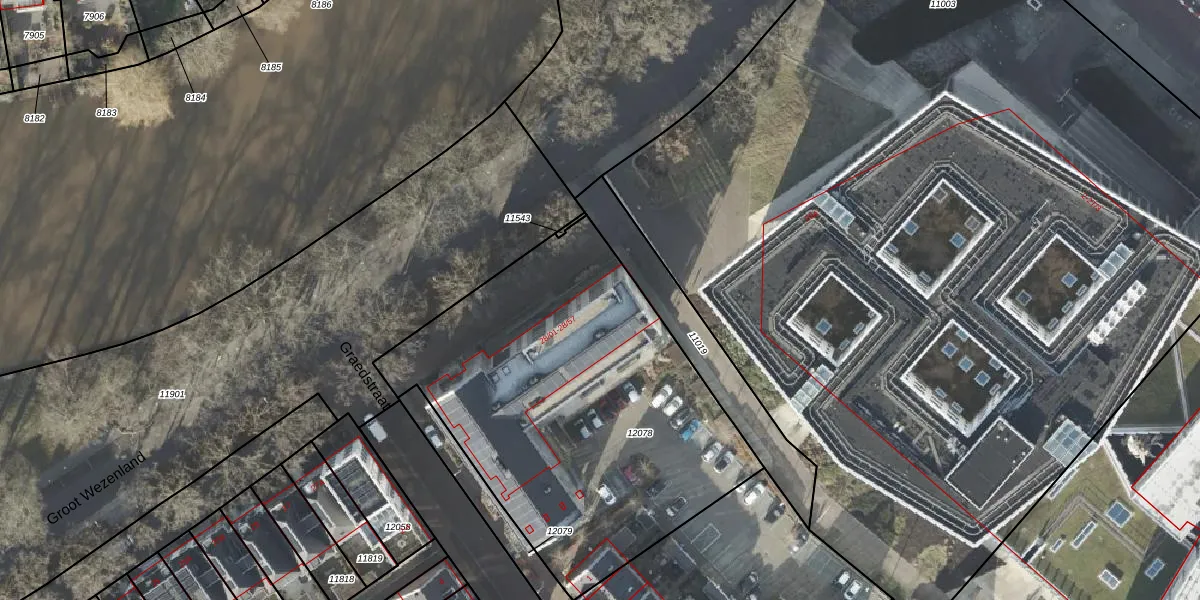 Het perceel waarop Groot Wezenland 28-17 staat heeft een oppervlakte van 2027 m². Dit is een zeer groot perceel. De perceeloppervlakte wordt geregistreerd door het Kadaster. Gedetailleerde informatie over de maten van dit perceel kunt u vinden in het rapport Kadastrale kaart met maatvoering van Groot Wezenland 28-17.