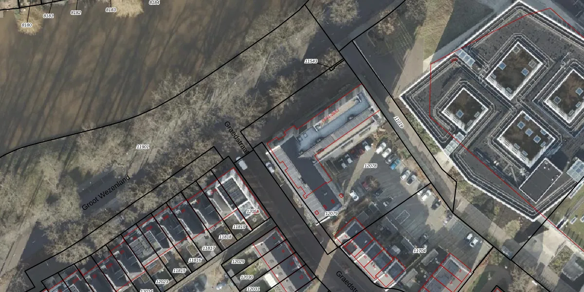 Het perceel waarop Groot Wezenland 28-31 staat heeft een oppervlakte van 2027 m². Dit is een zeer groot perceel. De perceeloppervlakte wordt geregistreerd door het Kadaster. Gedetailleerde informatie over de maten van dit perceel kunt u vinden in het rapport Kadastrale kaart met maatvoering van Groot Wezenland 28-31.