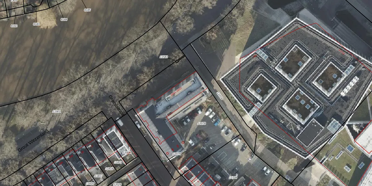 Het perceel waarop Groot Wezenland 28-36 staat heeft een oppervlakte van 2027 m². Dit is een zeer groot perceel. De perceeloppervlakte wordt geregistreerd door het Kadaster. Gedetailleerde informatie over de maten van dit perceel kunt u vinden in het rapport Kadastrale kaart met maatvoering van Groot Wezenland 28-36.