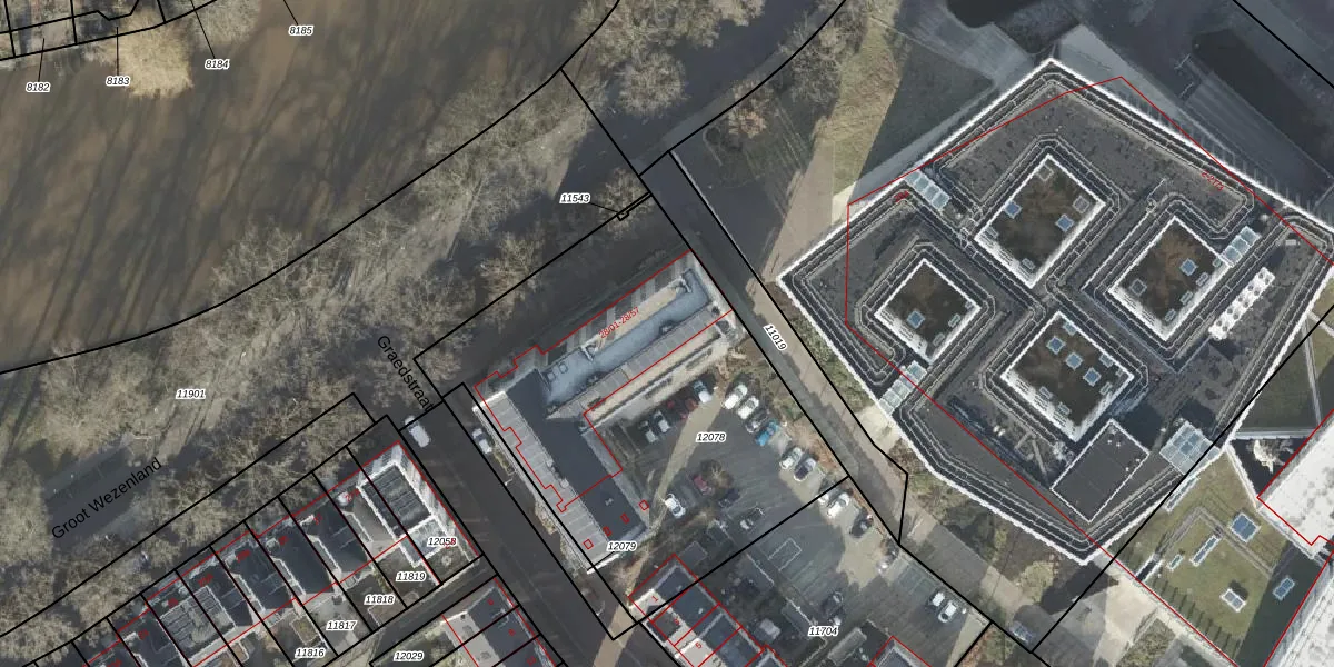 Het perceel waarop Groot Wezenland 28-46 staat heeft een oppervlakte van 2027 m². Dit is een zeer groot perceel. De perceeloppervlakte wordt geregistreerd door het Kadaster. Gedetailleerde informatie over de maten van dit perceel kunt u vinden in het rapport Kadastrale kaart met maatvoering van Groot Wezenland 28-46.