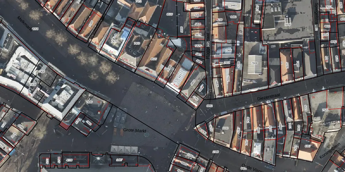 Het perceel waarop Grote Markt 9 staat heeft een oppervlakte van 192 m². Dit is een middelgroot perceel. De perceeloppervlakte wordt geregistreerd door het Kadaster. Gedetailleerde informatie over de maten van dit perceel kunt u vinden in het rapport Kadastrale kaart met maatvoering van Grote Markt 9.