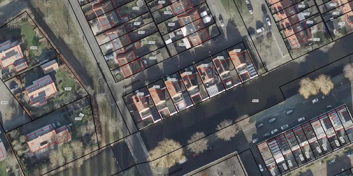Gebruik de zoekbalk of klik op een perceel voor informatie over de adressen binnen dit perceel.