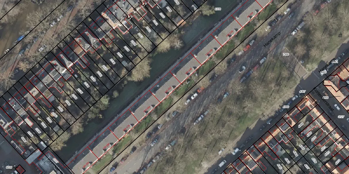Het perceel waarop Hanekamp 142 staat heeft een oppervlakte van 7978 m². Dit is een zeer groot perceel. De perceeloppervlakte wordt geregistreerd door het Kadaster. Gedetailleerde informatie over de maten van dit perceel kunt u vinden in het rapport Kadastrale kaart met maatvoering van Hanekamp 142.