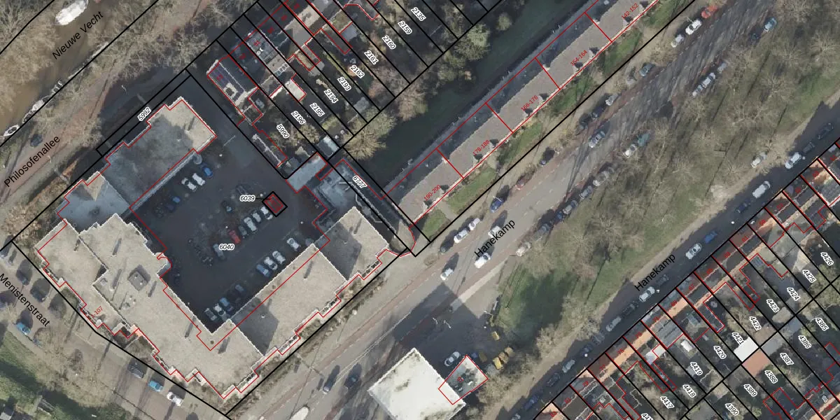 Het perceel waarop Hanekamp 196 staat heeft een oppervlakte van 7978 m². Dit is een zeer groot perceel. De perceeloppervlakte wordt geregistreerd door het Kadaster. Gedetailleerde informatie over de maten van dit perceel kunt u vinden in het rapport Kadastrale kaart met maatvoering van Hanekamp 196.