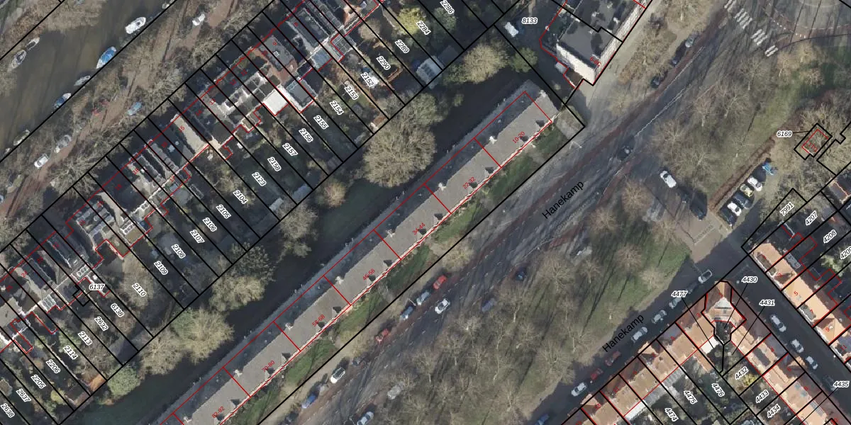 Het perceel waarop Hanekamp 38 staat heeft een oppervlakte van 7978 m². Dit is een zeer groot perceel. De perceeloppervlakte wordt geregistreerd door het Kadaster. Gedetailleerde informatie over de maten van dit perceel kunt u vinden in het rapport Kadastrale kaart met maatvoering van Hanekamp 38.
