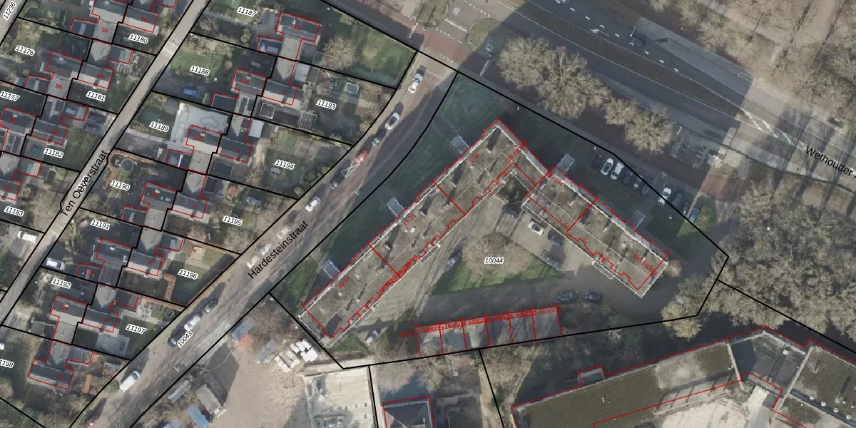 Hardesteinstraat 21 is gelegen op kadastraal perceel ZLE00G10044. Deze kadastrale aanduiding is uniek en wordt gebruikt door het Kadaster om eigendomsrechten en andere zakelijke rechten vast te leggen. Het perceel maakt onderdeel uit van de kadastrale gemeente Zwolle.