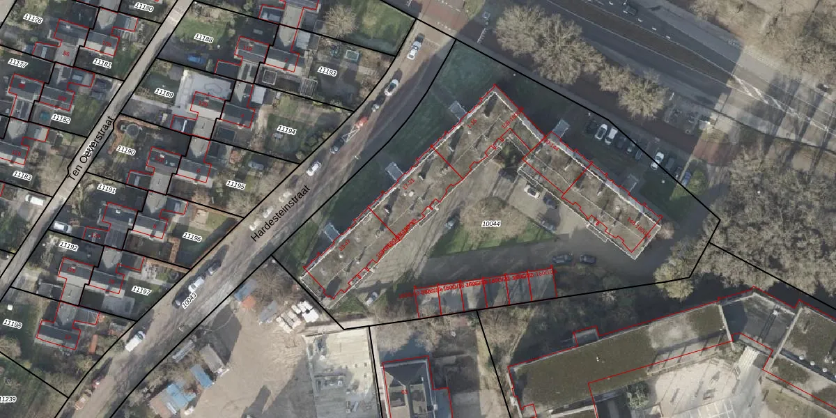 Het perceel waarop Hardesteinstraat 25 staat heeft een oppervlakte van 4160 m². Dit is een zeer groot perceel. De perceeloppervlakte wordt geregistreerd door het Kadaster. Gedetailleerde informatie over de maten van dit perceel kunt u vinden in het rapport Kadastrale kaart met maatvoering van Hardesteinstraat 25.