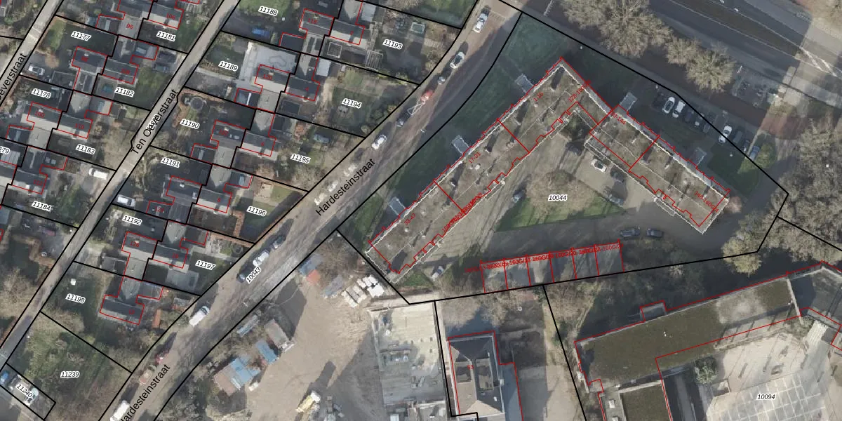 Het perceel waarop Hardesteinstraat 39 staat heeft een oppervlakte van 4160 m². Dit is een zeer groot perceel. De perceeloppervlakte wordt geregistreerd door het Kadaster. Gedetailleerde informatie over de maten van dit perceel kunt u vinden in het rapport Kadastrale kaart met maatvoering van Hardesteinstraat 39.