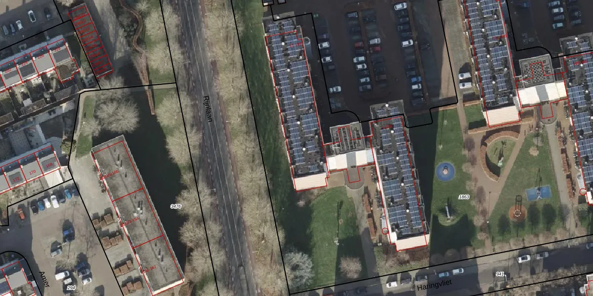 Het perceel waarop Haringvliet 57 staat heeft een oppervlakte van 9056 m². Dit is een zeer groot perceel. De perceeloppervlakte wordt geregistreerd door het Kadaster. Gedetailleerde informatie over de maten van dit perceel kunt u vinden in het rapport Kadastrale kaart met maatvoering van Haringvliet 57.